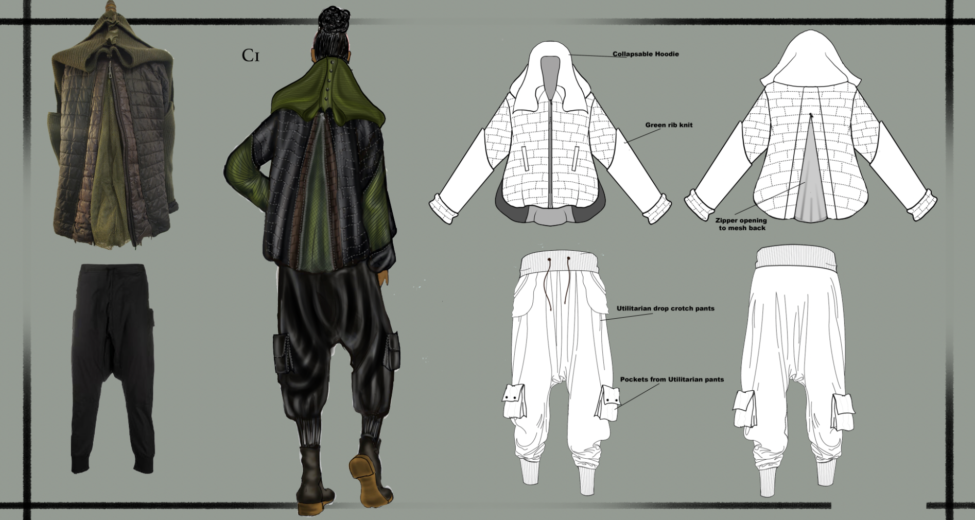 The "3-in-1" Philosophy: I designed a high-performance modular garment that transitions between a structured jacket, utility poncho, architectural skirt, and a storage-integrated jacket.